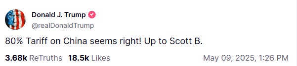 Ahead of the US and Chinese negotiators meeting in Switzerland this weekend, Donald Trump posted this on his platform, Truth Social: