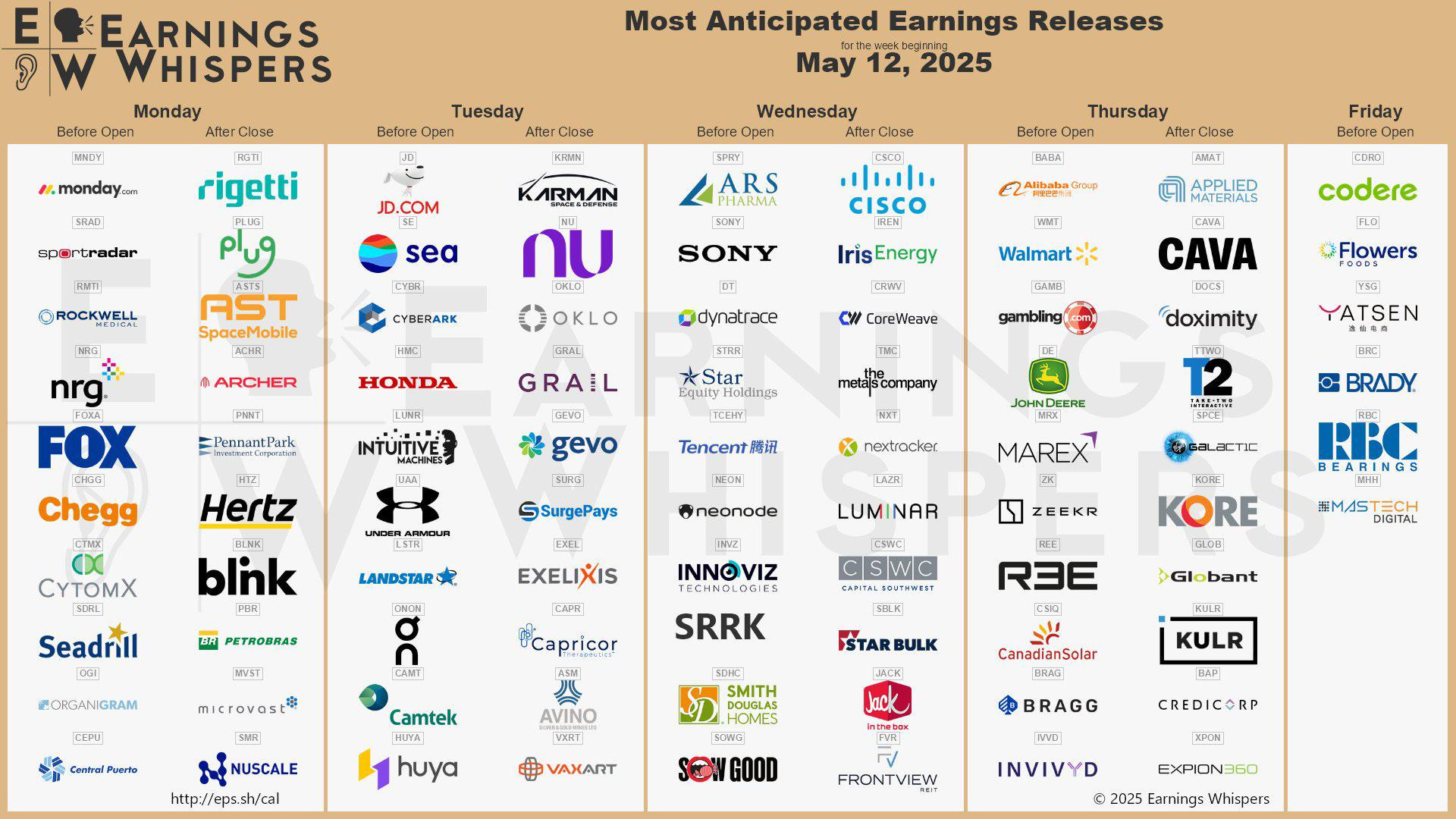 Thursday: Massive lineup with Alibaba (BABA), Walmart (WMT), John Deere (DE), and Applied Materials (AMAT), expect fireworks.