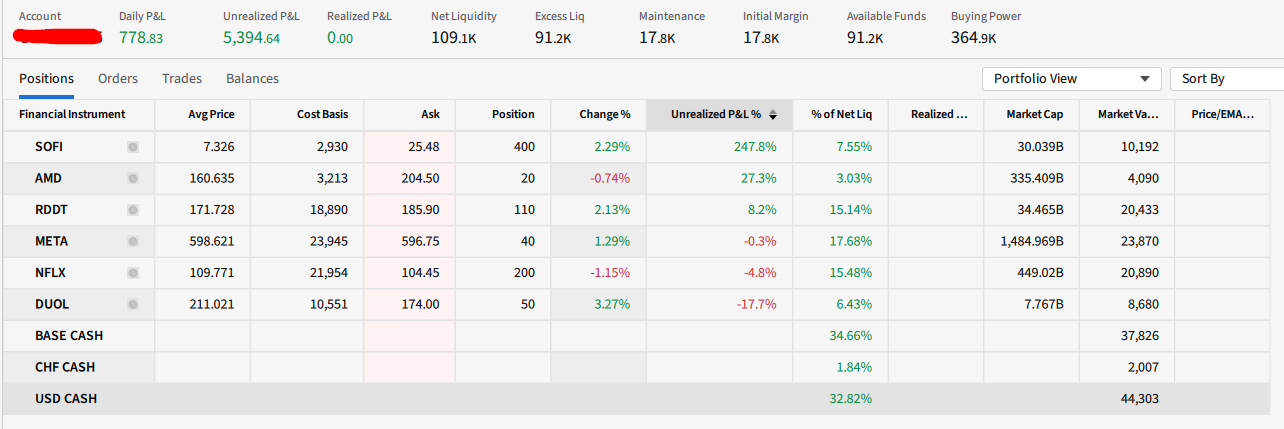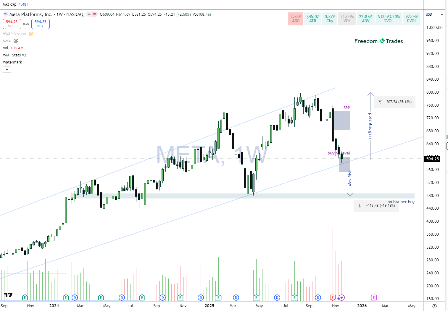 I already bought 40 META shares at an average price of 598, so that means the calculations are a bit off and I need to increase my position size.