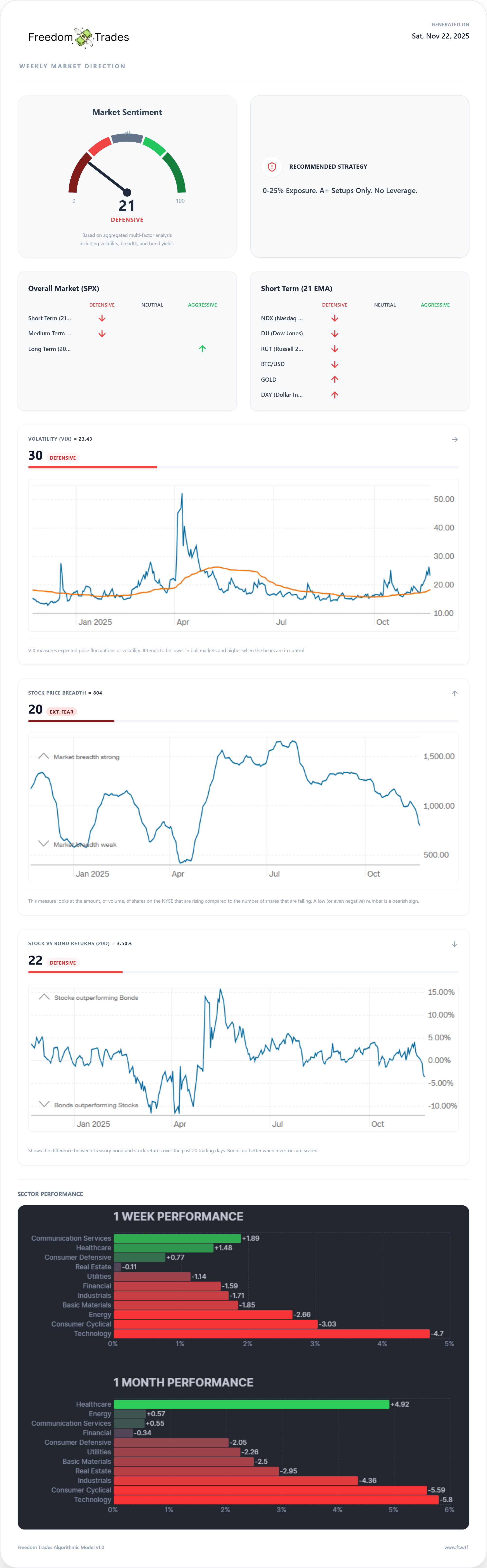 As the Weekly Market Direction shows, it’s time to stay defensive, which is why I’m not jumping into positions with full buying power.