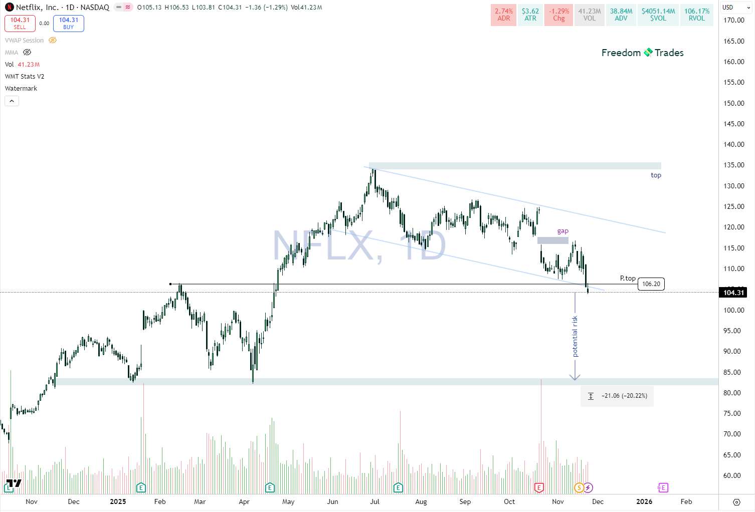 As for Netflix, I really don’t like how it closed on Friday. It broke below the falling wedge and the previous top level. If it fails to reclaim that level and drops under 100, we could easily see Netflix at 83 a level I’m not willing to sit through. If that happens, I’ll consider closing the position and waiting for a better setup.
