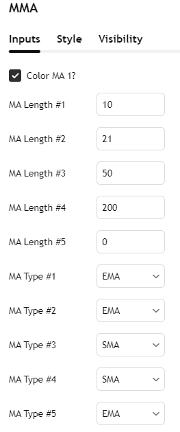 So I’m only interested in the 10 EMA, 21 EMA, 50 SMA, and 200 SMA.