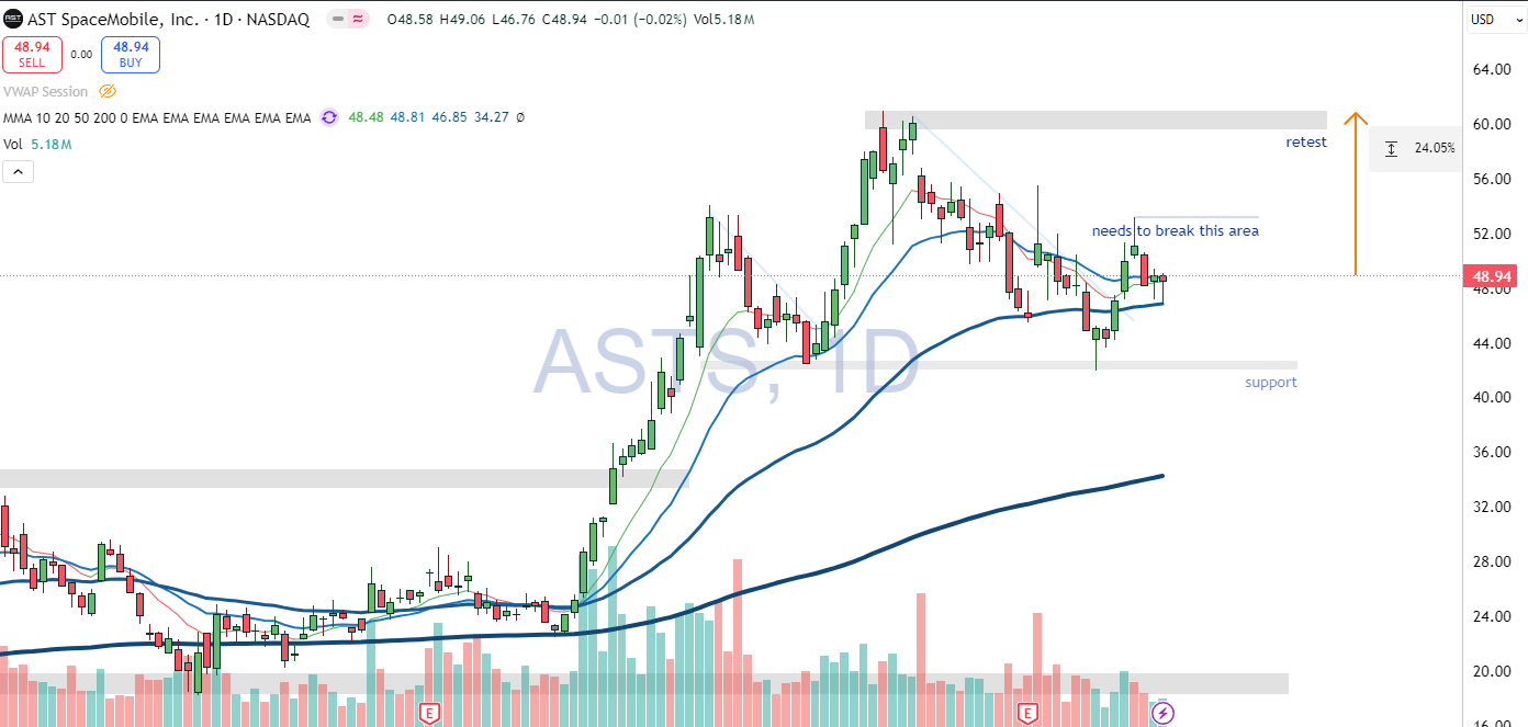 I want to see a breakout at the $53 level to feel comfortable holding this position further. My average price is $45.72. If it loses the $45 level, I’ll consider closing the trade earlier.