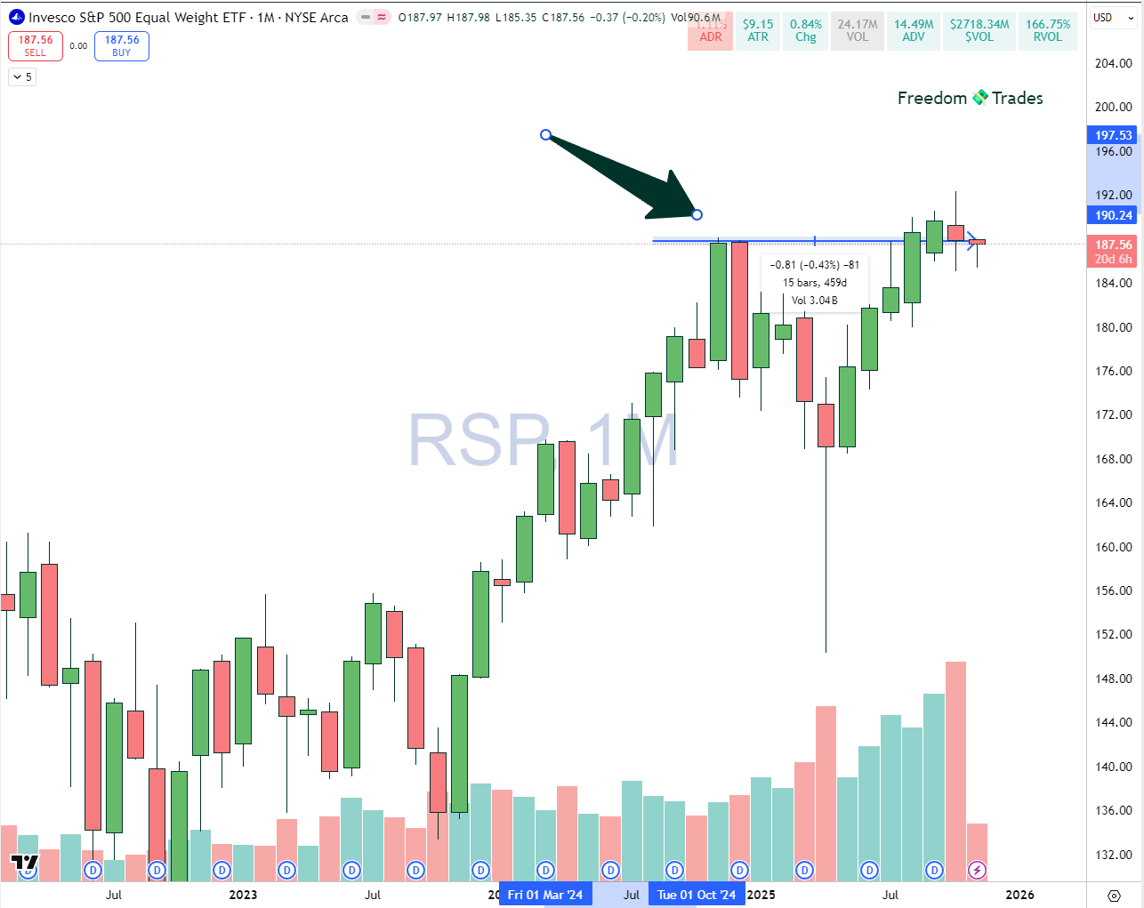 However, the issue is that the ADR (Average Daily Range) is currently around 2%, which makes it a slow mover. We don’t want to keep money parked in something that, on average, only moves 2% per day. To reach that 20% target, we might need to stay in this trade for quite a while, possibly 2-5 months.