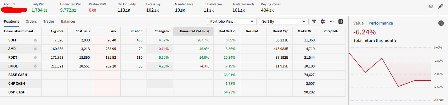 Because you pay for this newsletter monthly, I feel I have the responsibility and duty to be 100% transparent with you. That’s why I’ve introduced this format where I show you every week exactly what my portfolio looks like. (shares, total value of my portfolio, avg price - everything!)