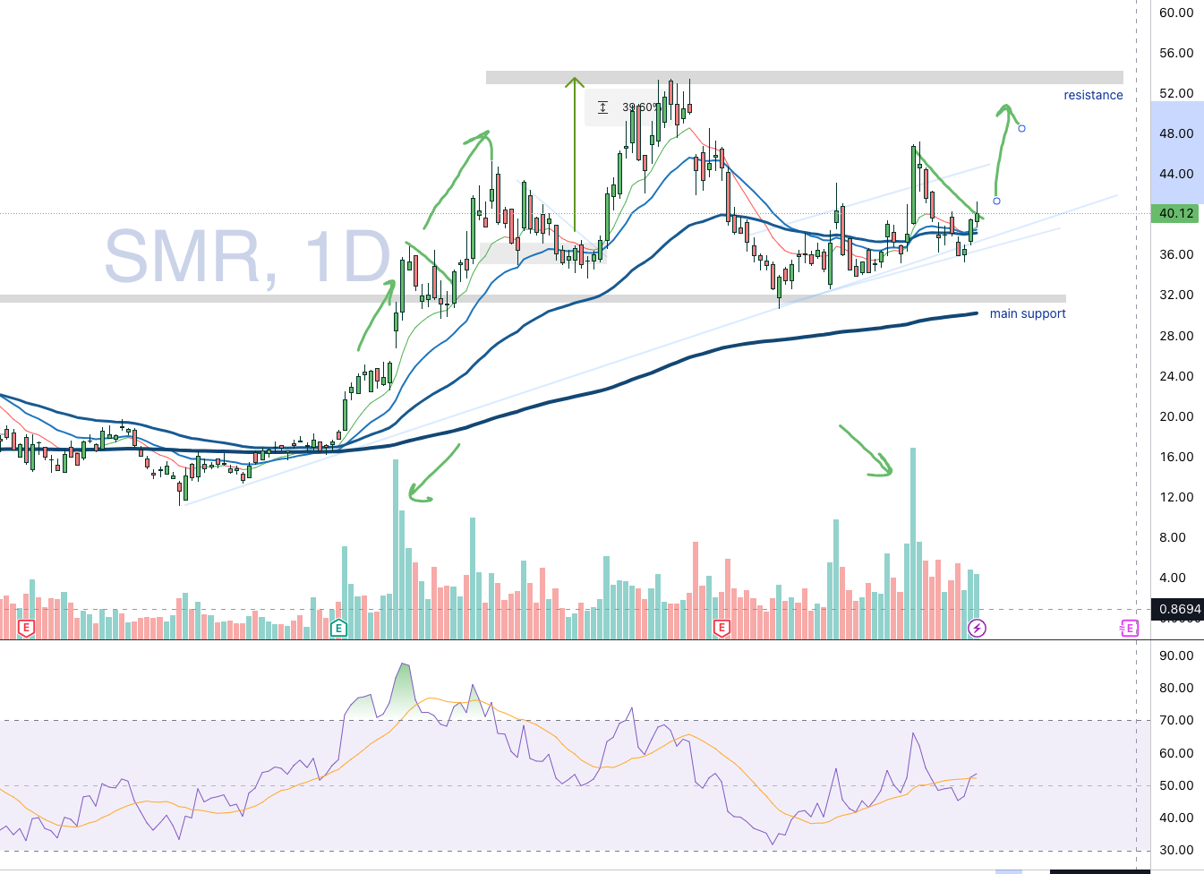 Look at how SMR reacted after that huge volume surge, the price declined for a few days and then exploded higher.