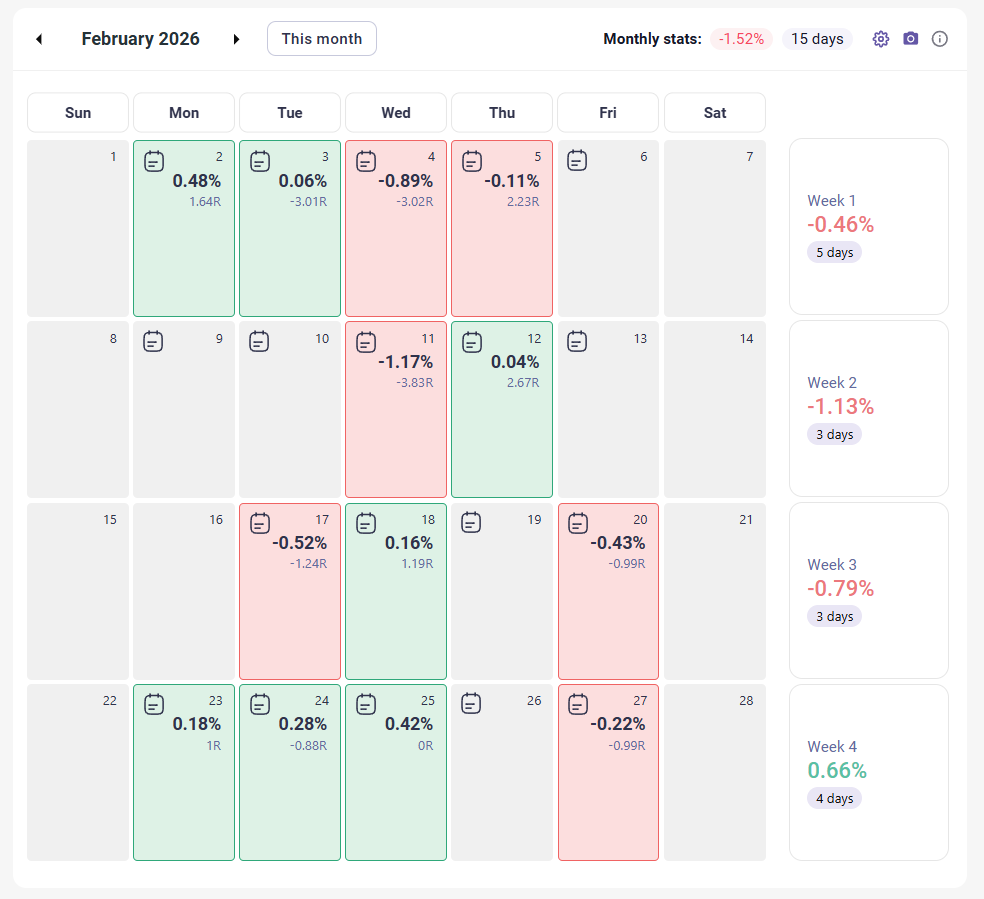 For me personally, although this month, if we look at realized profits, will show a negative month, I consider that I traded much better than in January when I made money.