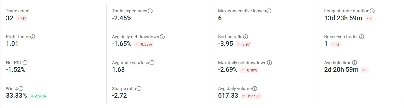 This month I lost approximately $2,000, about 1.55% of my account.