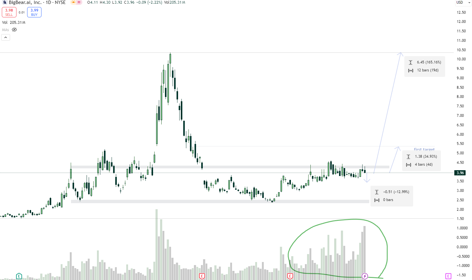 If price breaks and holds above the $4.10–$4.20 zone on volume, I'll enter with first target at ~$5.30 (34%+), second target ~$9.5