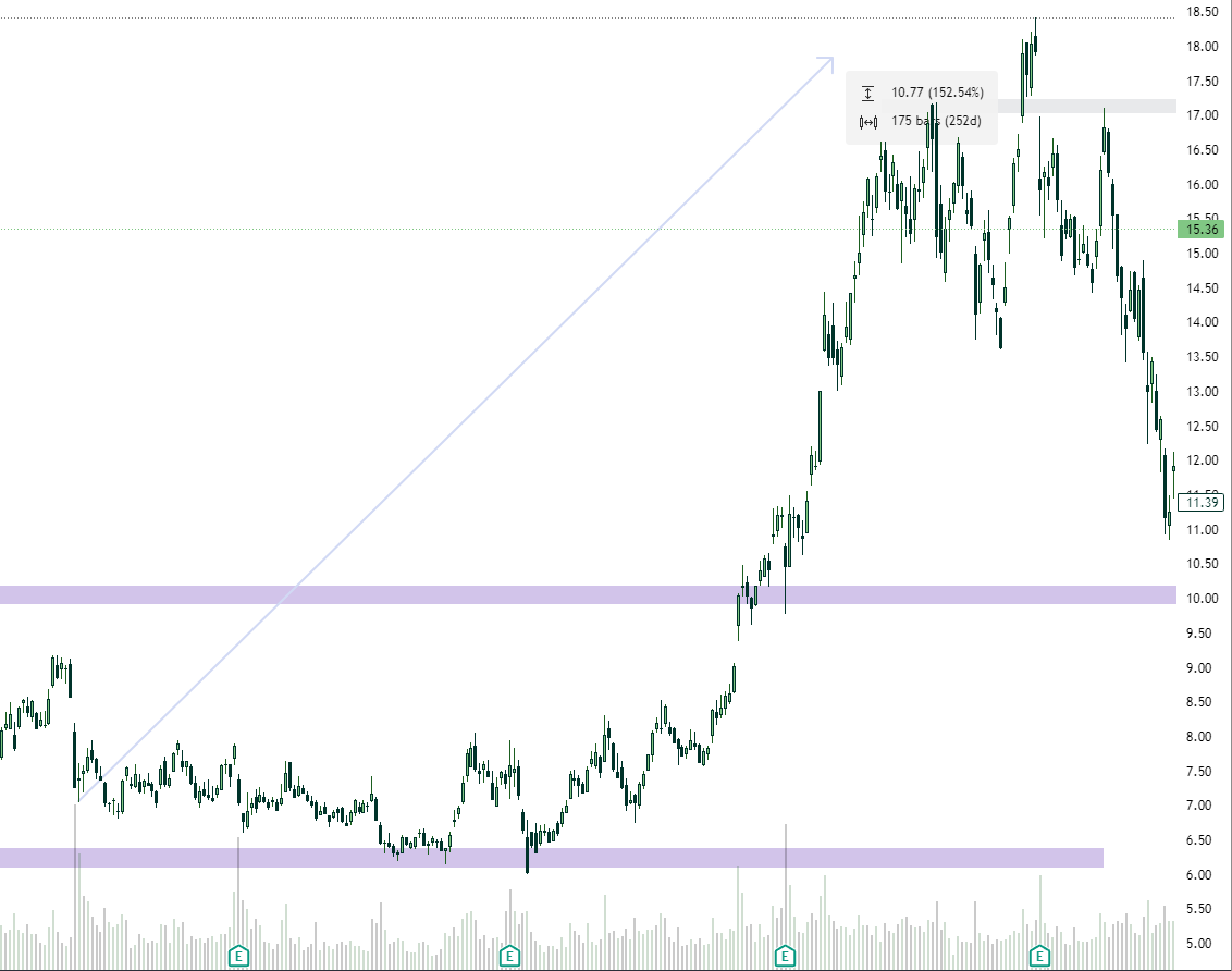 If it rejects and retests support near $3.50. I may build a position slowly with wider stop ($3.20) and adjusted size.