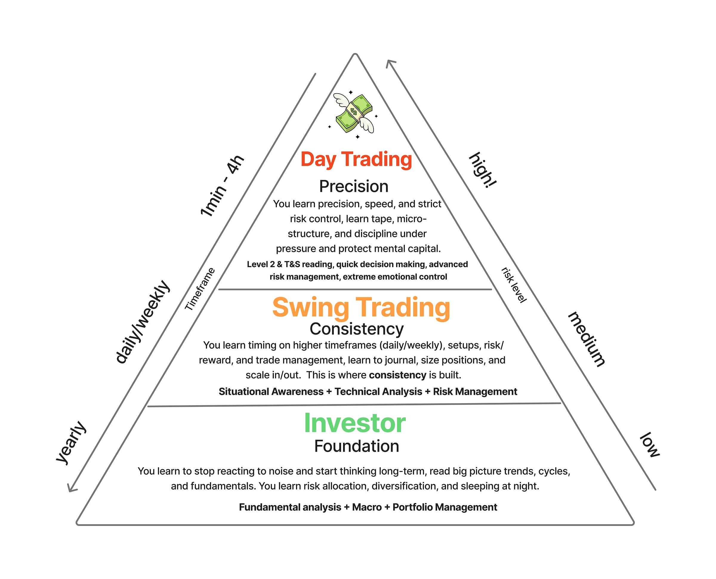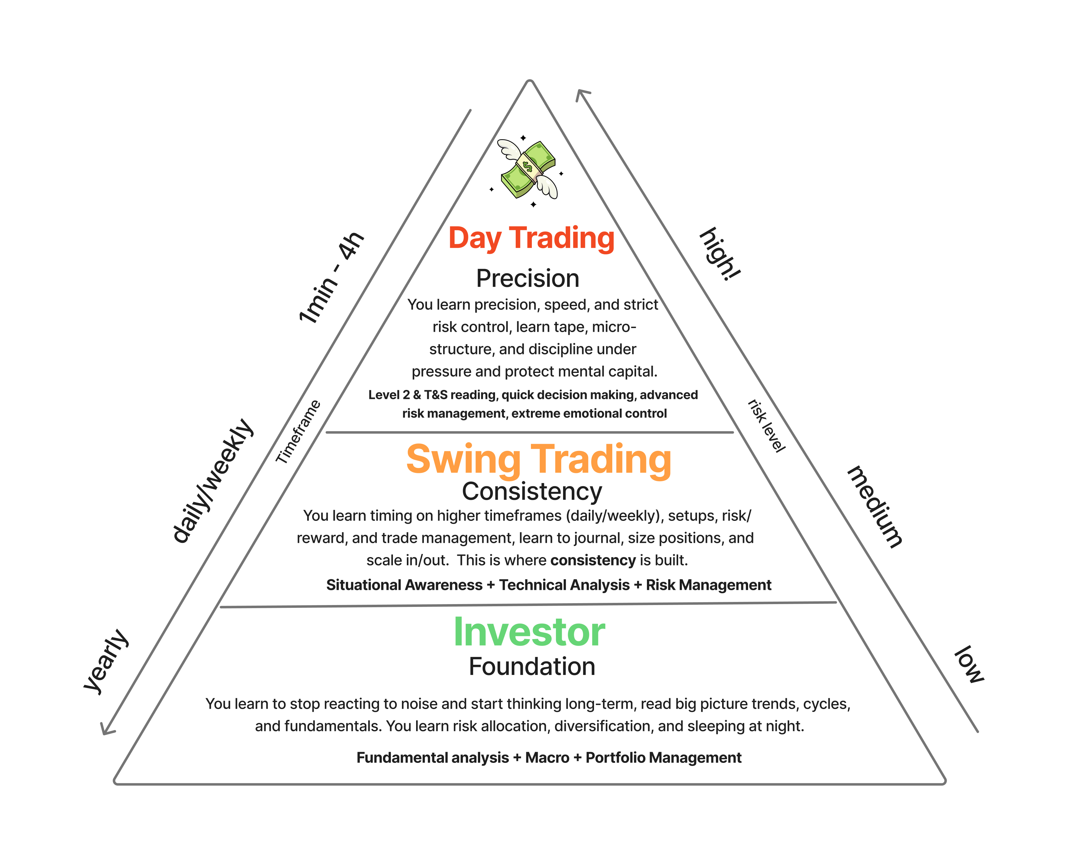 I created this pyramid as a guide to help you understand what your true progression as a trader should look like: