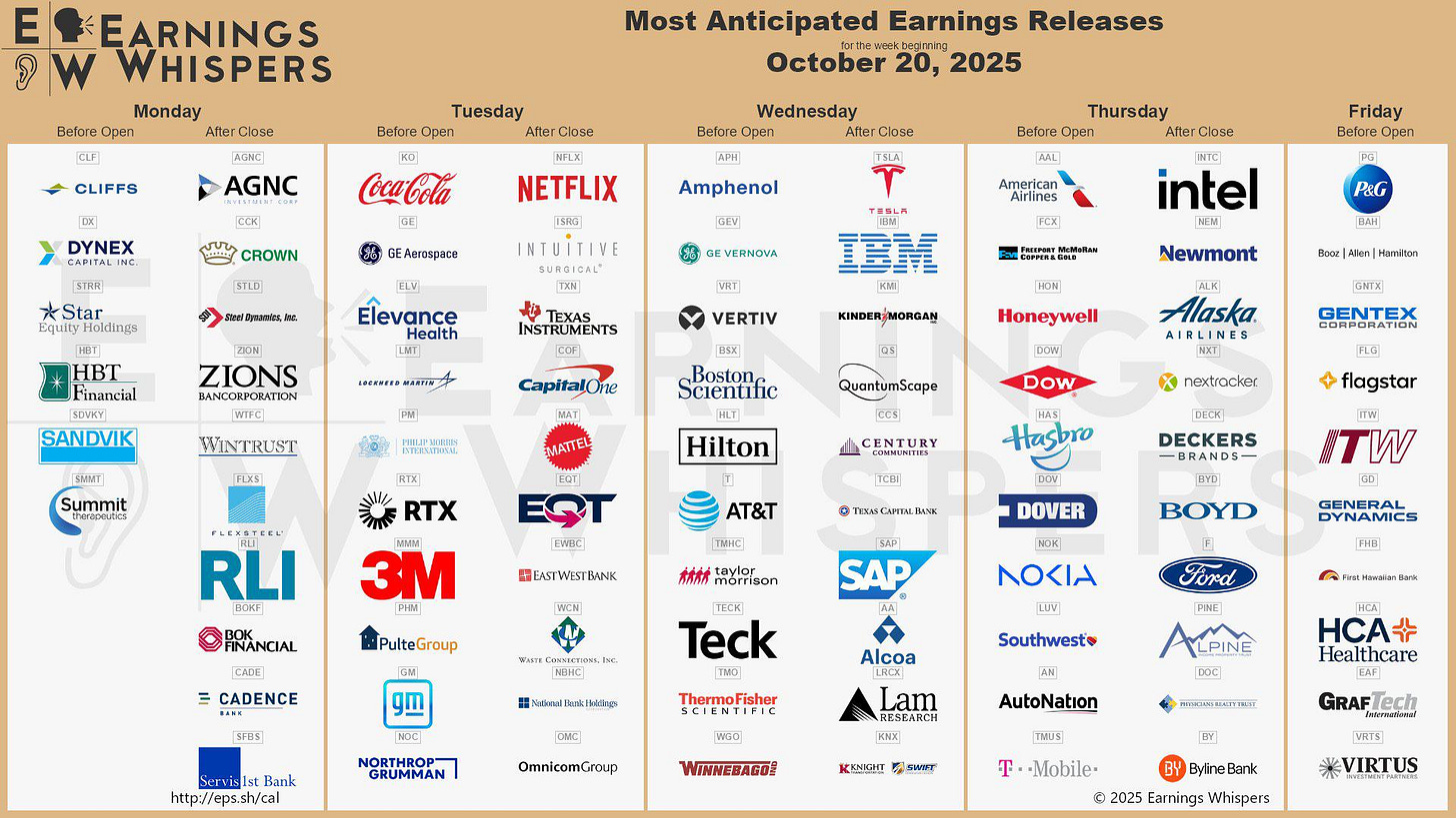 The spotlight’s on Wednesday and Thursday, with heavyweights like Tesla, IBM, Lam Research, SAP, Intel, Honeywell, and P&G reporting.