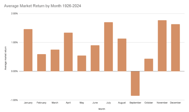 For almost 100 years, September has had the worst average returns of any month. On paper, stocks drop about 1% more often than not. Why? Nobody really knows. Some blame post-summer profit taking, back-to-school expenses, or even pure psychology: if everyone expects September to be bad, they act like it will be.