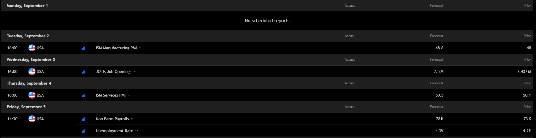 Tuesday kicks off with ISM Manufacturing PMI, any dip below 50 screams contraction.
