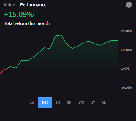 I want to tell you that August has been my best month so far. My portfolio grew by 15% in just this month alone.