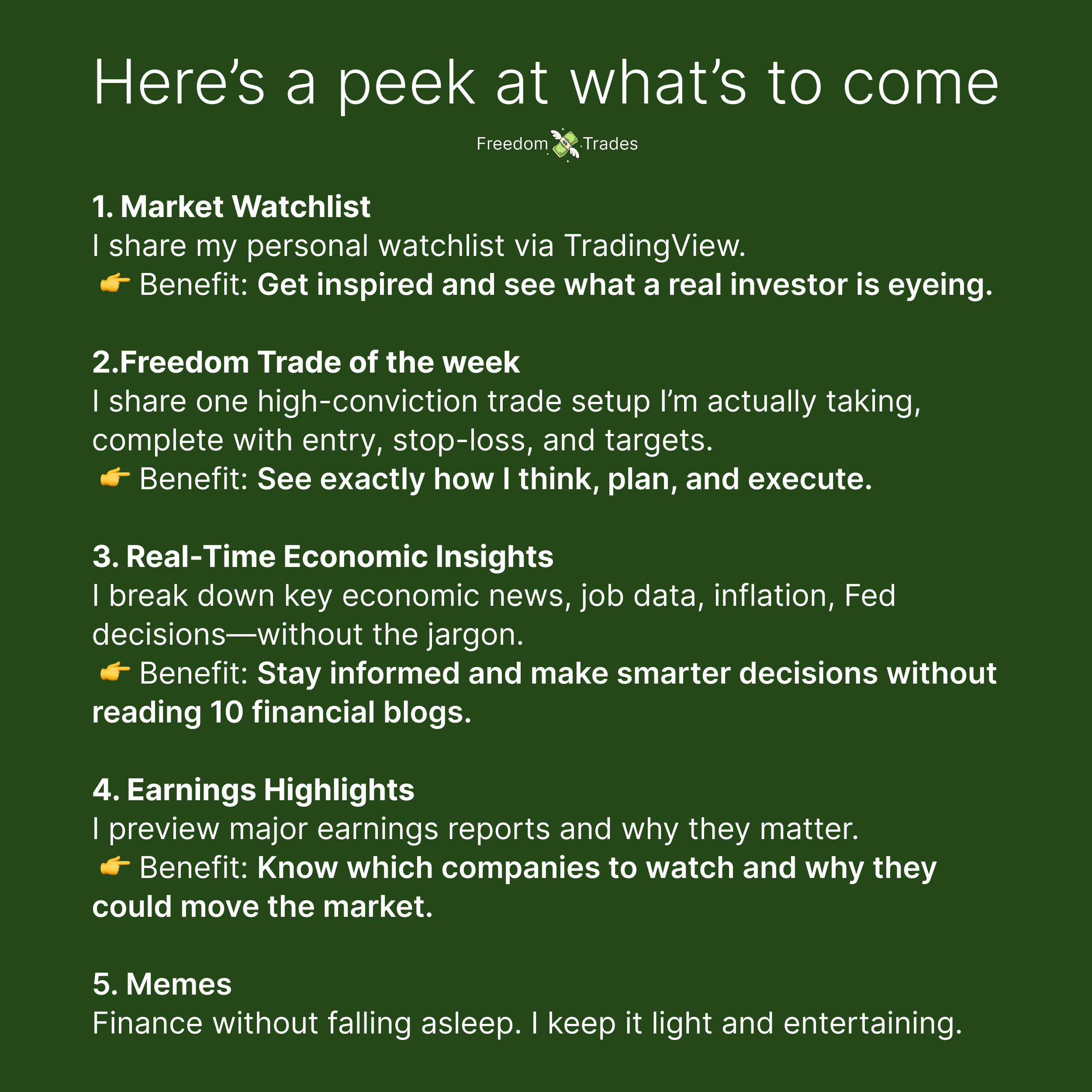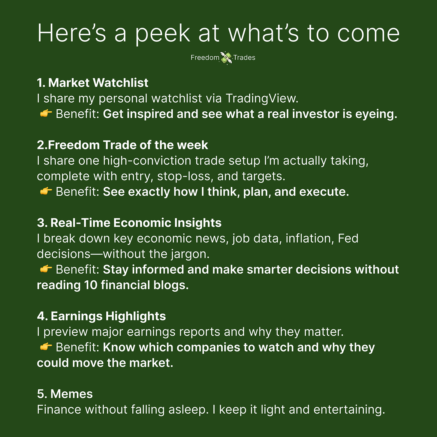 Each week, free subscribers & paid get a real trade idea, key market insights, a personal watchlist, earnings to watch, and a breakdown of what actually matters in the economy.