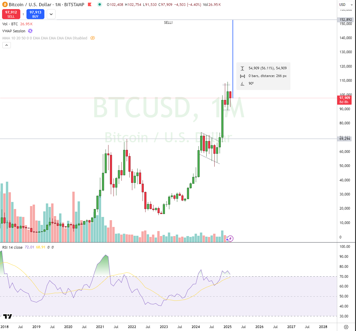 I will start taking profits at $120,000, $130,000, $140,000, $150,000, and I will probably keep small amounts, like 0.10 BTC, until the end of the cycle.