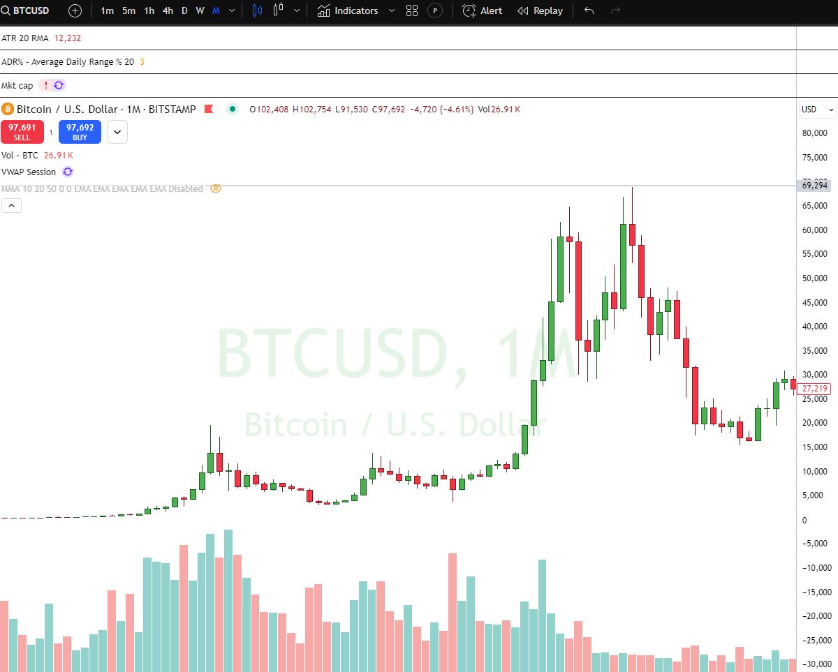 And if we look back at 2021, during the last bull run (when BTC reached $69,294):