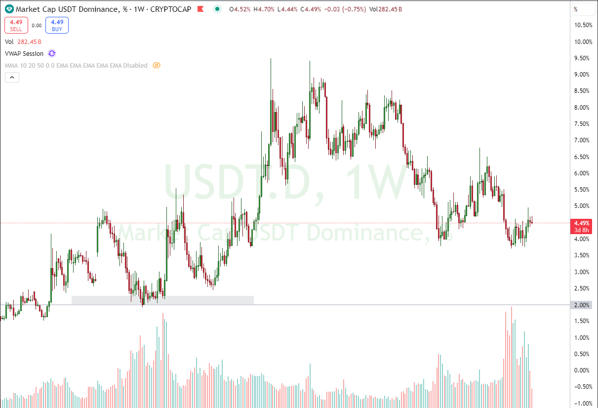 However, we can look at some indicators. The first one I like to look at is the USDT.D chart.