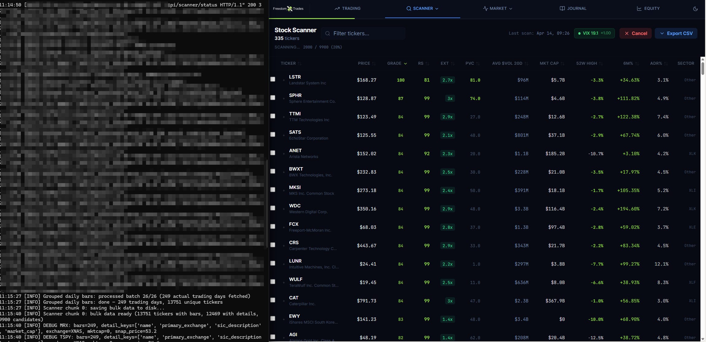 Using Claude to code, I built a scanner based on a formula I created that detects price and volume contraction, along with other factors such as RS Rating, distance from the 50MA, Avg $Vol 20D, 52-Week High Proximity, ADR%, and more.