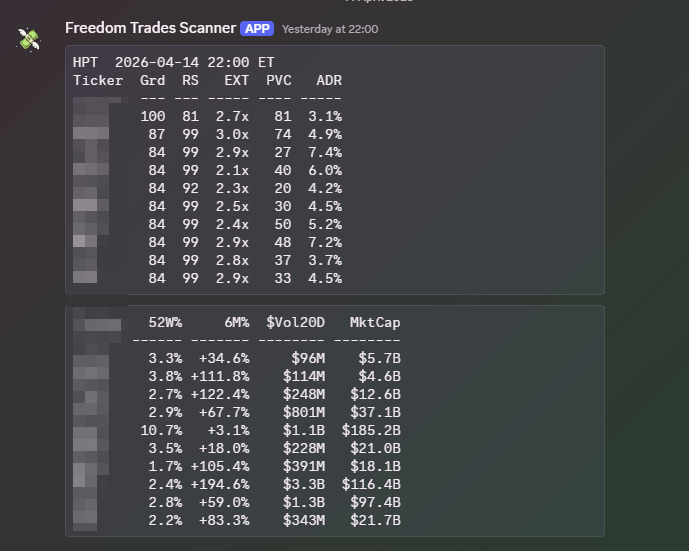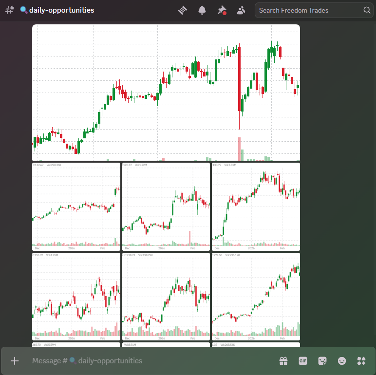 I built a bot that pulls the tickers and their charts and posts them in the Discord server every day after market close, so you have enough time to build your focus list for the next day.