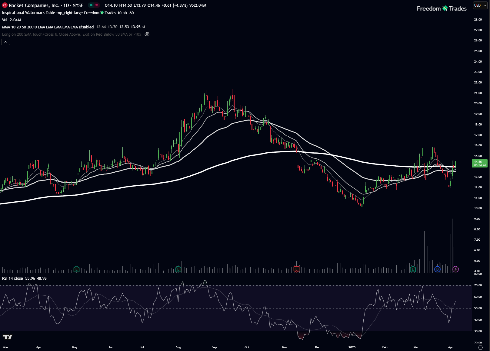 Entry: anywhere between $14.30–14.50 on a slight pullback or consolidation above the 200 SMA.