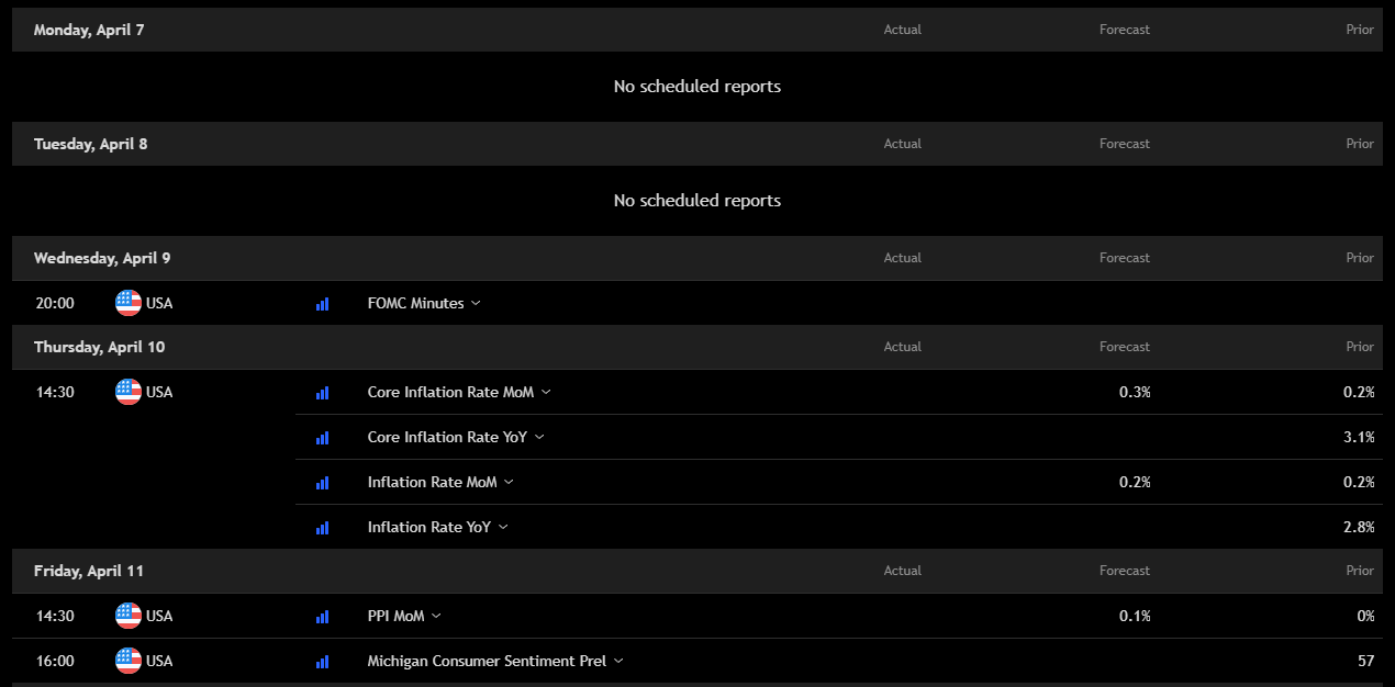 – Friday: PPI and Consumer Sentiment. If producers feel the squeeze and consumers lose confidence, recession fears might hit full volume.