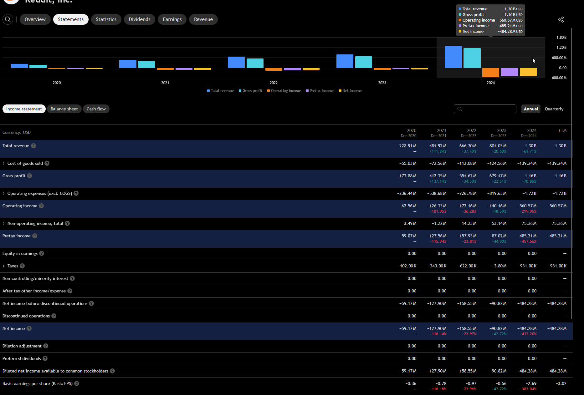 Revenue in 2024 hit $1.3 billion… that’s up big YoY. But they’re burning cash like crazy. Operating margins are sitting at -43%.