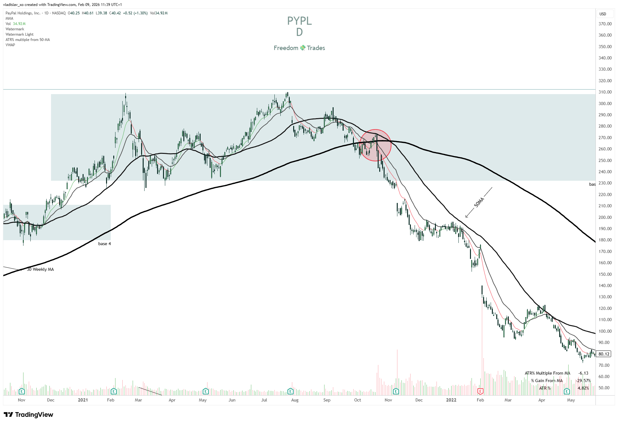 For example, $PYPL lost 88% from its All-Time High (ATH).