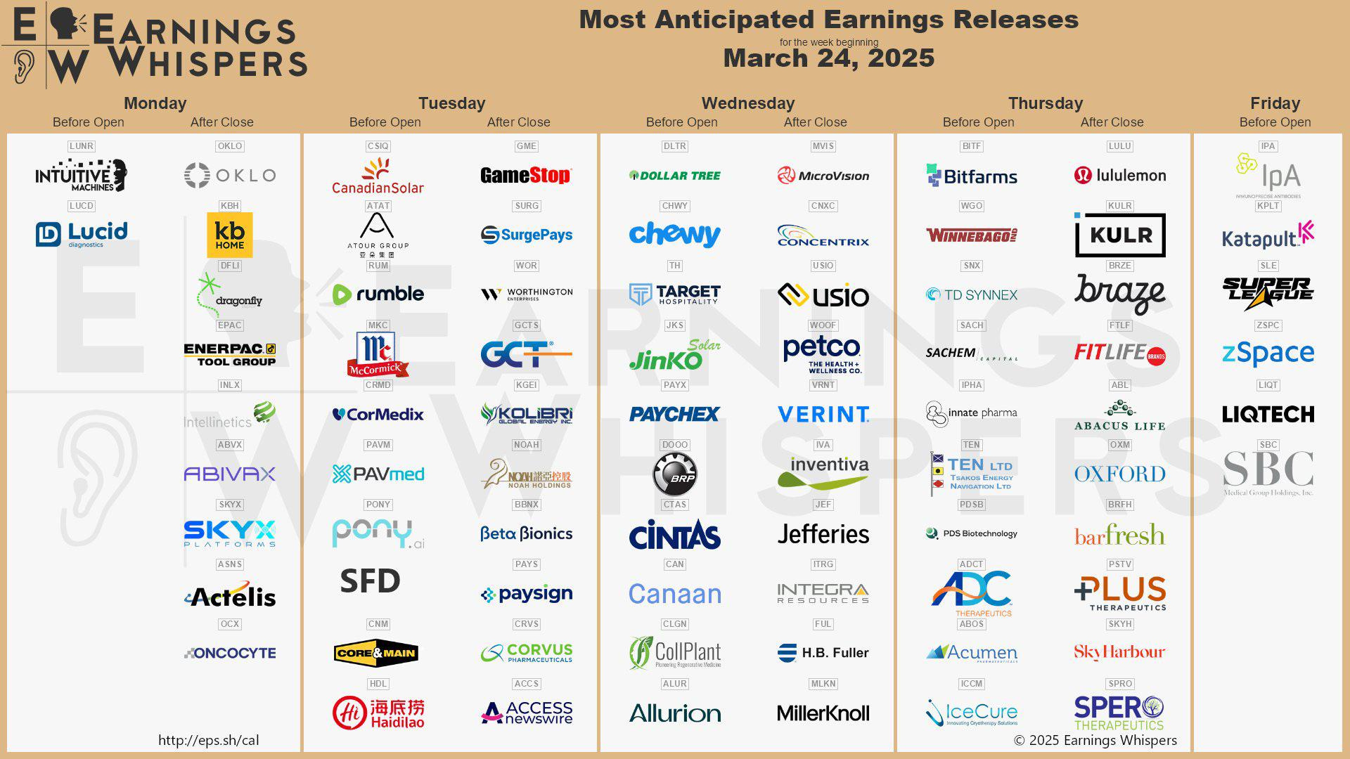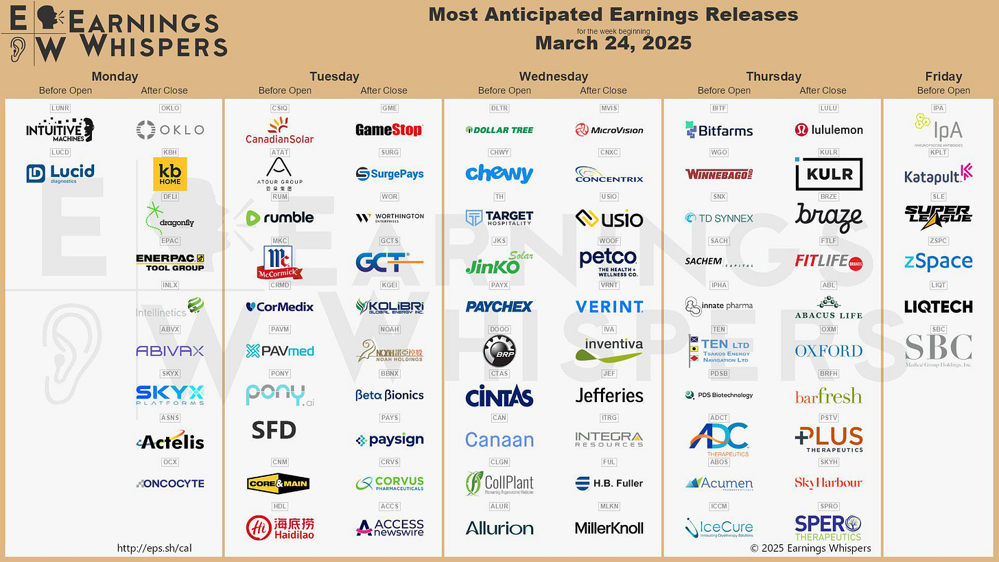 Some of the most interesting and big companies reporting earnings for the week of March 24, 2025, include: