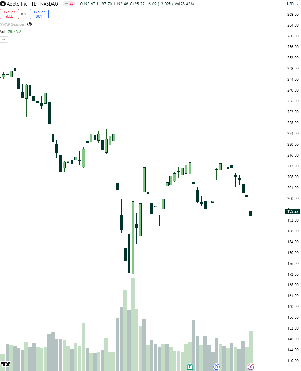 Apple closed Friday down 3.03%. AAPL 0.00%↑