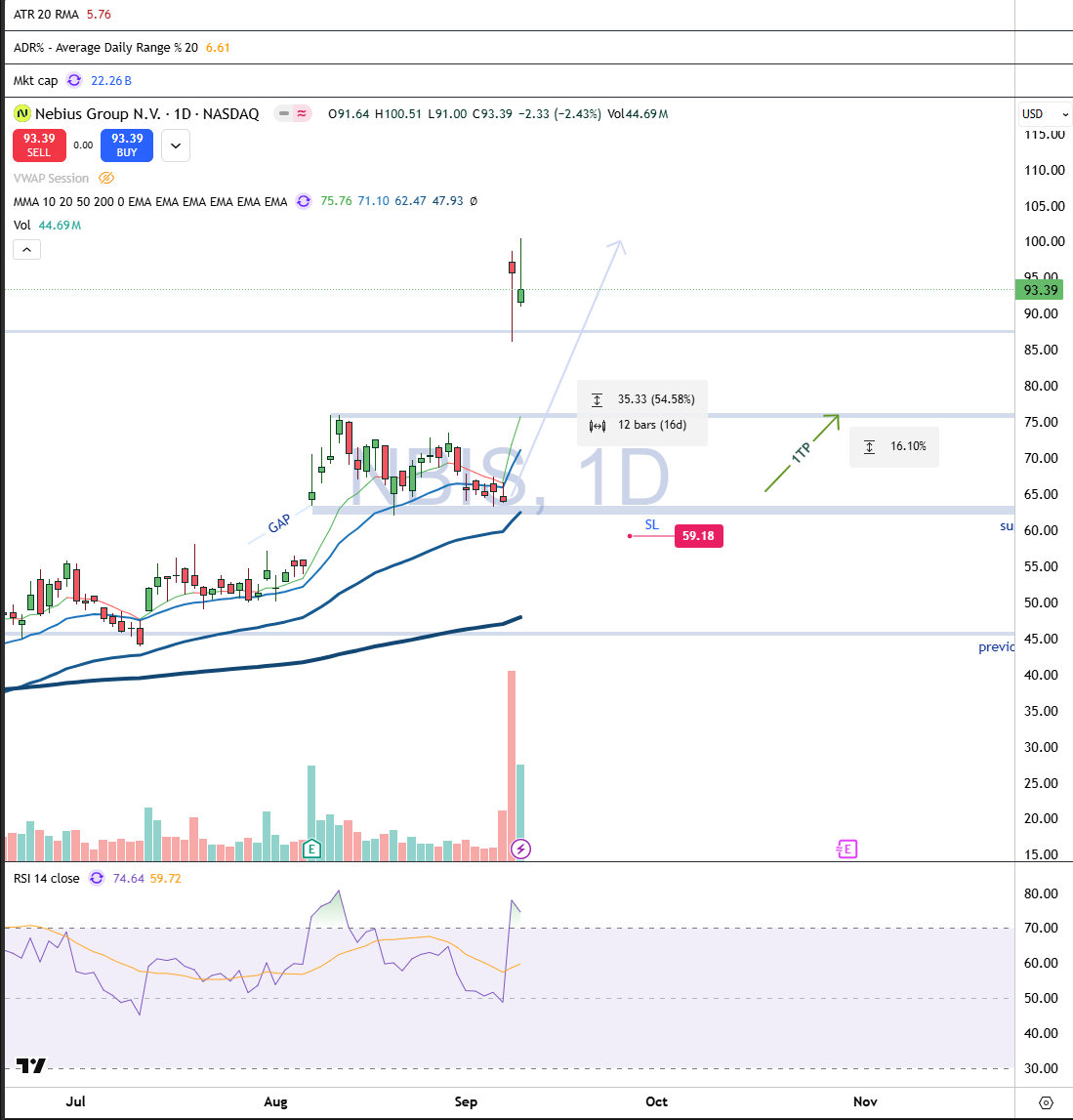 But I want to caution you, this is purely a technical setup, with no catalyst behind it, and still in a downtrend since April, failing to break its all-time high. For me, this is a B setup, so don’t allocate a large position to this trade.