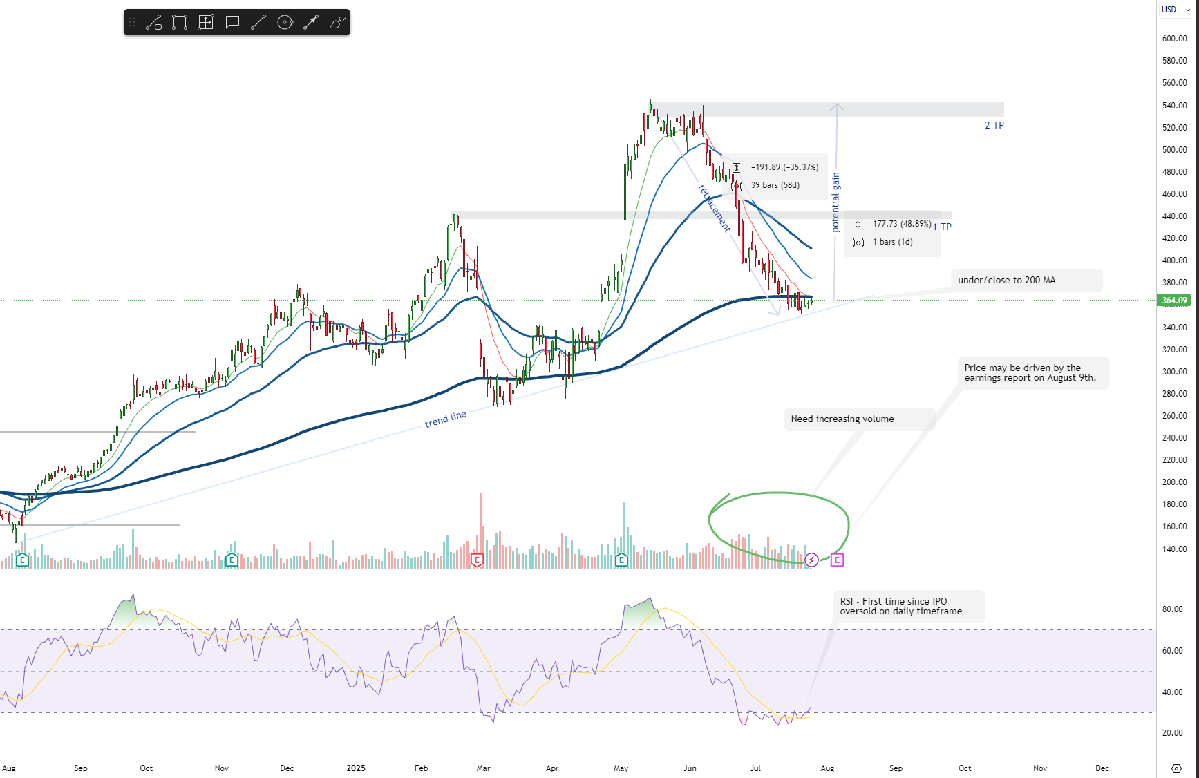 Earnings drop on August 9th, and that could be the real trigger. Could send price flying or wipe out the setup completely. It’s a binary risk.