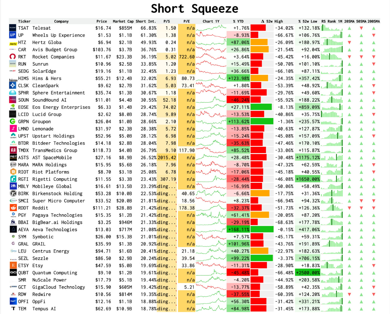 Hertz ($HTZ) is showing up strong on the short squeeze radar, nearly 49.93% short interest with +87.06% YTD gains and +180.97% off its 52-week low.
