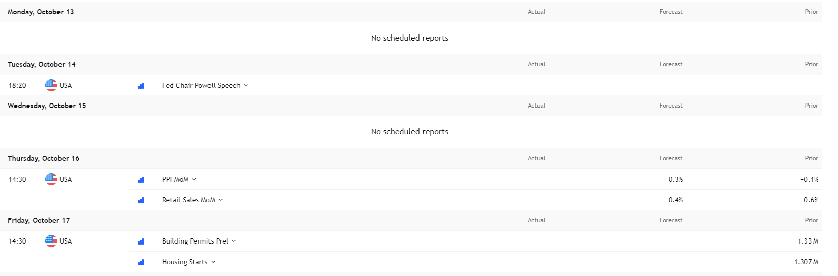 Light macro week, but not irrelevant, Powell’s speech Tuesday could stir rate expectations before Thursday’s PPI and Retail Sales data.