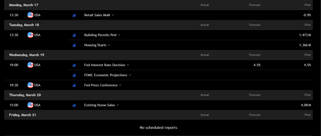 Big week ahead for the markets! Retail sales are down, signaling weaker consumer spending. Housing data drops Tuesday, but the real spotlight is Wednesday’s Fed decision, rates expected to hold at 4.5%, but Powell’s press conference could shake things up. Existing home sales wrap up the week. Buckle up, volatility incoming!